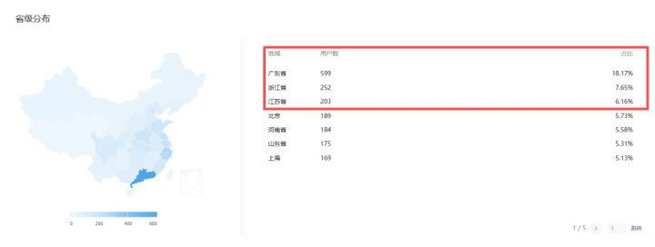 地域归属广东一直是大盘,占比18%,其次分别是浙江和江苏,分别占比7%、6%。