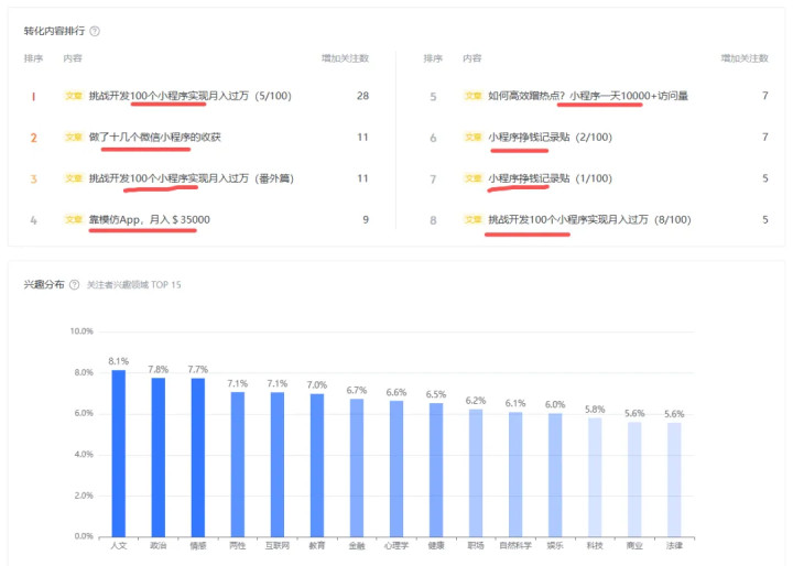 转化内容排行这个版块很有意思